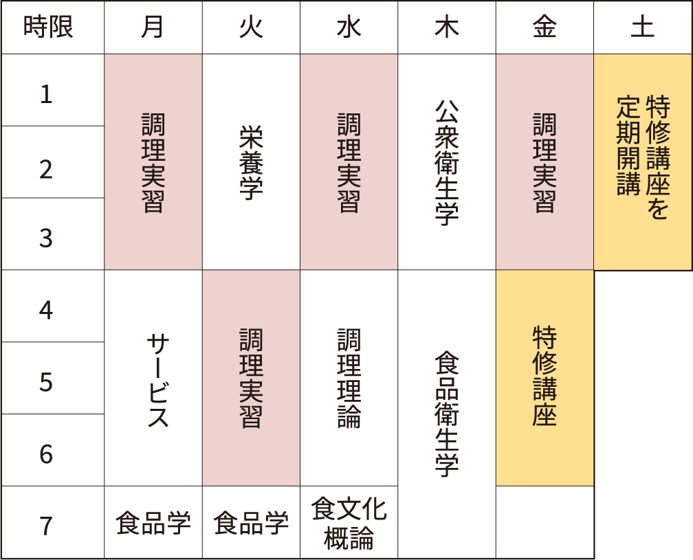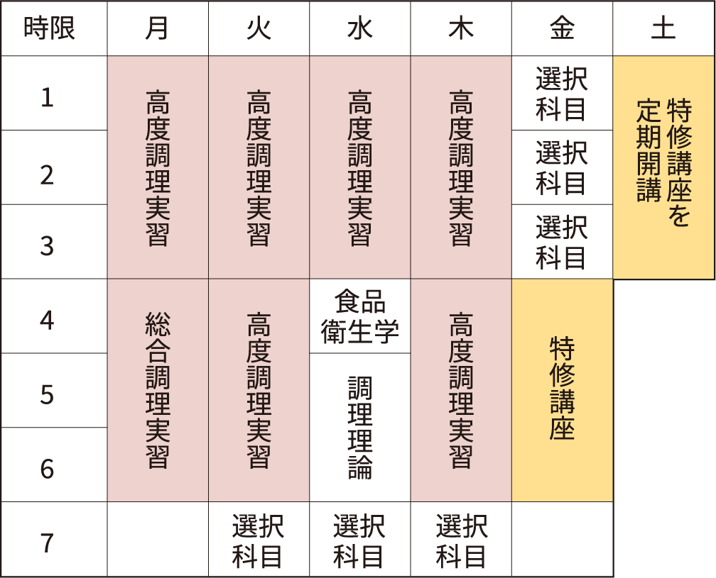 ※⾏事や⼀部授業では、⾼度調理コースとカフェ・スイーツコース合同で⾏う場合があります。