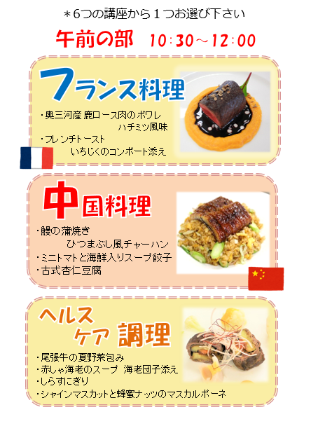 午前・午後合わせて6講座の中から、お好きな講座を1つお選びください!