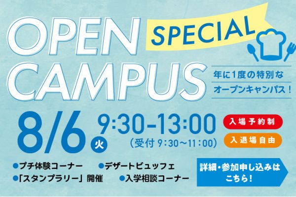 オープンキャンパス【7/26(土) スペシャルメニュー】受付終了のお知らせ