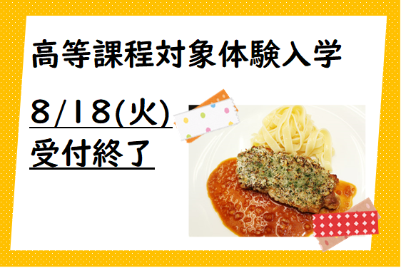 【高等課程】8月18日の体験入学受付終了のお知らせ
